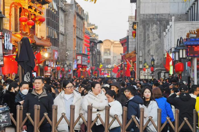2026年2月19日(農歷正月初三),北京前門大街迎來春節假期客流岑嶺,展望日均客流量將打破10萬東說念主次,成為京城年味最濃的打卡地之一。